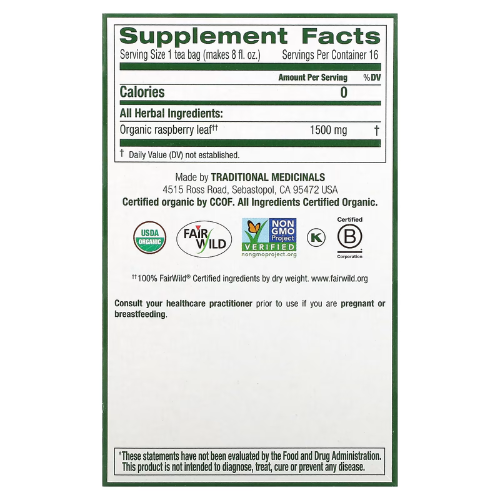 Traditional Medicinals, Raspberry Leaf 16 Wrapped Tea Bags, 0.05 oz (1.5 g) Each